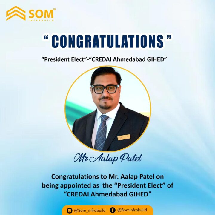Som Infrabuild, an Ahmedabad cornerstone for over five decades, has consistently crafted architectural landmarks. From cozy tenements to high-rise apartments and modern commercial buildings, we have been instrumental in shaping Ahmedabad’s evolving skyline and elevating urban living standards. Our legacy is intertwined with the city’s development, and we continue to uphold our commitment to innovation and precision. Som Infrabuild’s enduring mission is to shape Ahmedabad’s future, contributing to its progress and enhancing living standards one architectural masterpiece at a time.